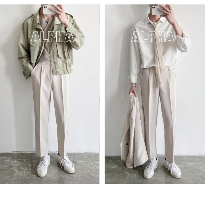 Quần tây nam vải trắng kem, dáng quần tây nam ống suông độ rộng vừa phải - Minh Cường