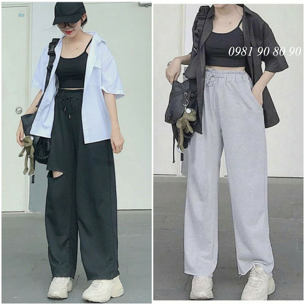quần ống rộng nữ cạp chun lai tưa 2 màu cá tính