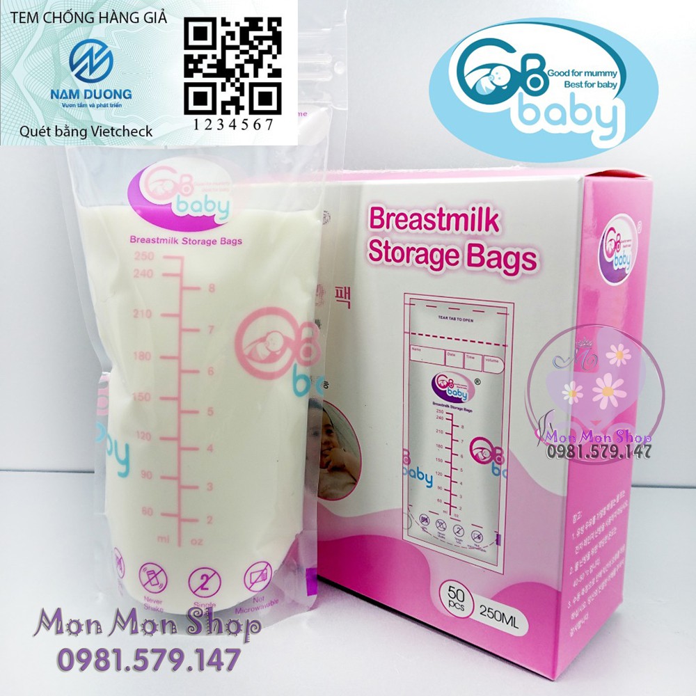 [Có tem chống hàng giả ] Hộp 50 túi trữ sữa GB Baby 250ml hàng chuẩn free ship