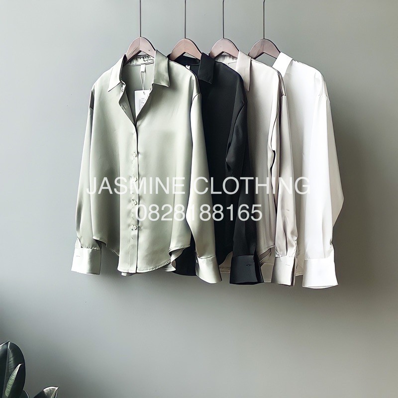 Áo sơ mi nữ công sở dài tay kiểu Hàn Quốc form rộng chất lụa đẹp cao cấp màu Trắng Đen Xanh Be LEERY SM-01